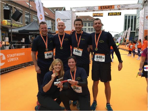 Eine Gruppe buntgemischter Kollegen nahm am 13. Oktober 2019 als Staffel am 12. Stadtwerke Lübeck Marathon teil. Kollegen aus der Leitstelle, den Wachabteilungen, dem Rettungsdienst und des gehobenen Dienstes teilten sich die Strecke von 42,2 Kilometer zwischen dem Haerder Center und der Travemünder Allee. Dabei erreichten die Kollegen nach 3:21:33 Stunden als 21. Staffel von 116 Teams das Ziel. Unterstützt wurden wir vom Team Aus- und Fortbildung sowie vom Feuerwehr Sport Club.